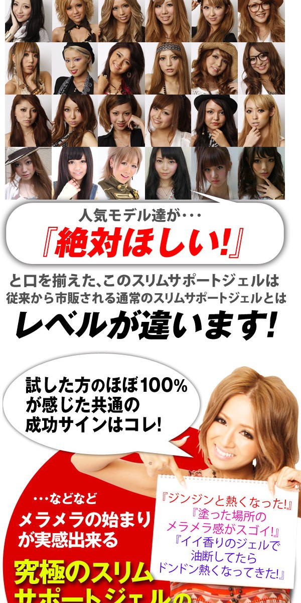 水、BG、パルミチン酸カルニチン、カルニチン、カフェイン、異性化リノール酸、パンテテインスルホン酸Ca、システイン酸、ガラナ種子エキス、ゲリジウムカーチラギネウムエキス、パイナップル果実エキス、ニンジン根エキス、アーチチョーク葉エキス、ダイズ種子エキス、オウゴンエキス、レスペデザエキス、コンブレタムミクランサム葉エキス、ウルバラクツカエキス、サクシニルアテロコラーゲン、ヒアルロン酸Na、グリチルリチン酸アンモニウム、ナイアシンアミド、トレオニン、ラウリン酸ソルビタン、ラウロイルプロリン、バニリルブチル、ポリアクリル酸Na、カルボマー、水酸化Na、赤213、メントキシプロパンジオール、香料、グリセリン、レシチン、結晶セルロース、マルトデキストリン、トコフェロール、ポリソルベート80、ジカプリル酸PG、PG、ピロ亜硫酸Na、EDTA、フェノキシエタノール、ソルビン酸K、安息香酸Na、リン酸2Na、コハク酸2Na、メチルパラ弁、エチルパラベン、プロピルパラベン、イソブチルパラベン |