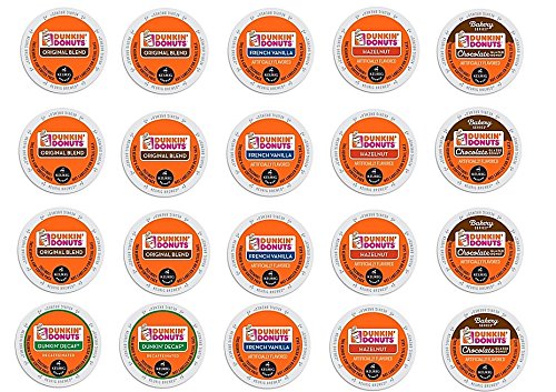6x original blend, 4 french vanilla, 4 hazelnut, 4 chocolate glazed donut and 2 decaf
