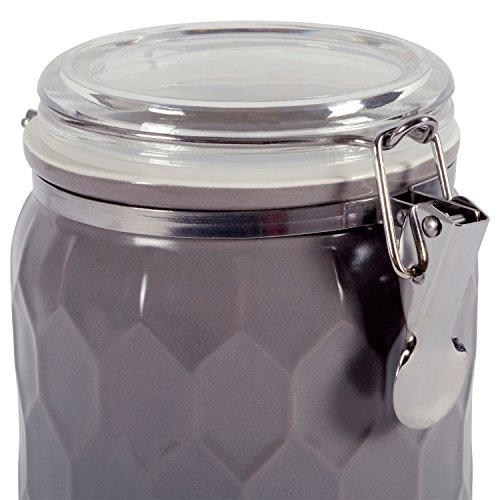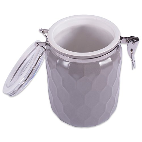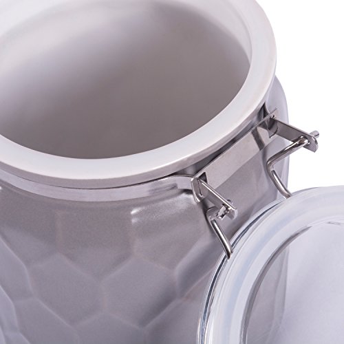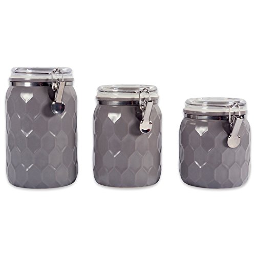 DII 3 - Pieces Modern Honeycomb Ceramic Kitchen Canister Jar With Airtight Clamp Lid For Food Storage, Serve Coffee, Sugar, Tea, Spices and More - Gray