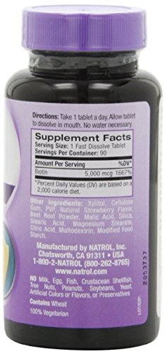 -. Title : Natrol Biotin 5000 Mcg Fast Dissolve- Strawberry, 90 Count