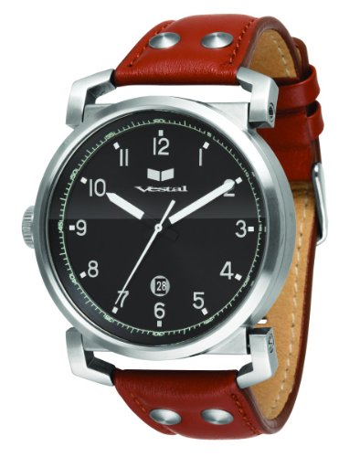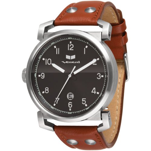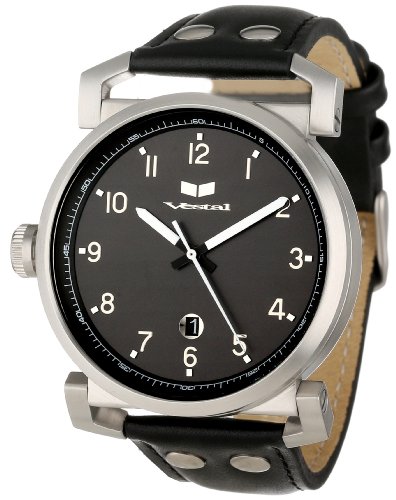 Vestal Men's OB3L001 Observer Silver Black Leather Watch