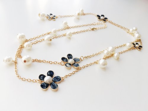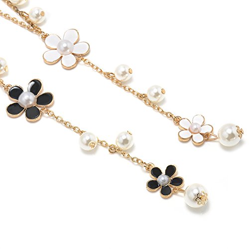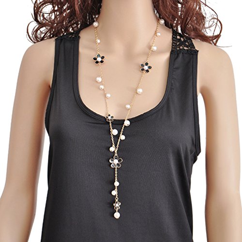 CTrend Daisies Five Petal Flowers Pearl Chain Necklace Pendant Birthday Gift Wedding Gift E007