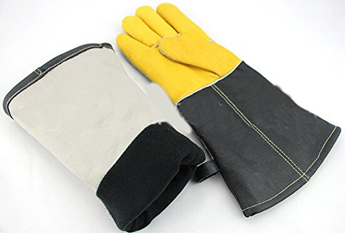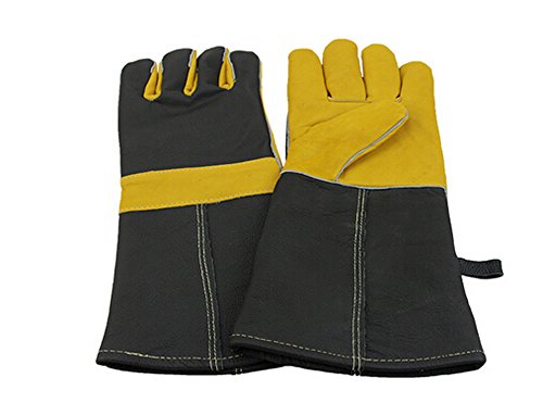 100% Premium Grain Leather Best of Barbecue Grill Hearth Leather Gloves Cotton lining W/ 14.5-Inch Extra Long Sleeve