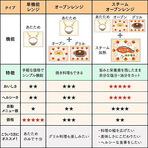 シンプルなデザインでキッチンにすっきり収納できる電子レンジです。