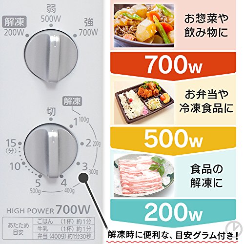 用途に合わせて3段階の調理モード(強/700W、弱/500W、解凍/200W)切替で、簡単に調理ができます。