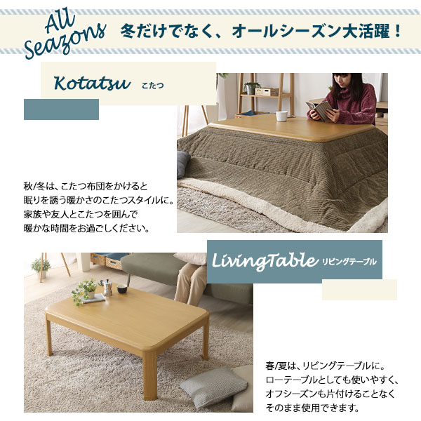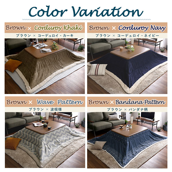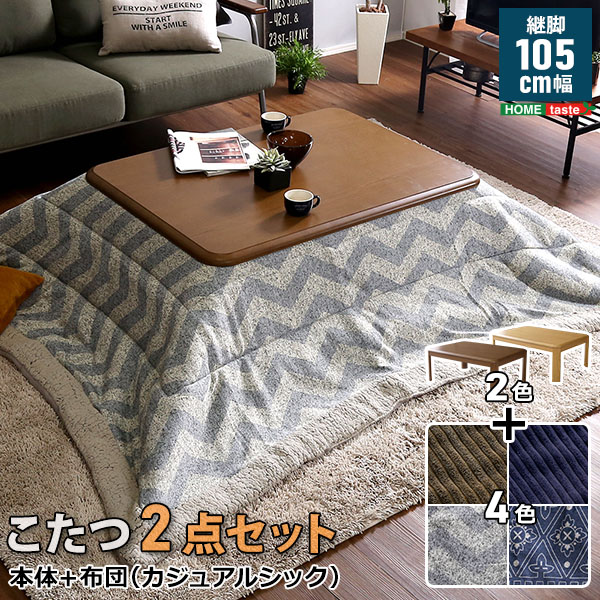 ●木のぬくもりを感じる飽きのこない継脚家具調こたつと、カジュアルシックな4柄から選べる薄掛け布団の2点セット!