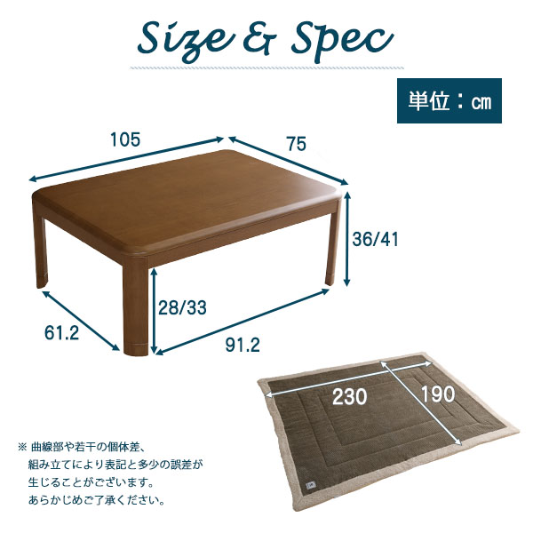 ●こたつ本体:105X75X36/41cm