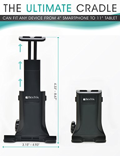 COMPATIBILITY no matter which tablet you have, whether it is a 7’’ Amazon fire or an Apple iPad Pro, you can easily fit it in the Bestrix Universal Car Headrest Tablet mount due to its adjustable arms and super firm grip. Compatible with iPad Pro, iPad Mini 1,2,3,4, iPad air, iPad air 2; Android tablets like Samsung Tab S2, Tab E, Tab 4, LG GPAD PRO, Dell Tablets, Amazon Kindle, Kindle Fire, Kindle Voyage, and any tablet up to 11”
