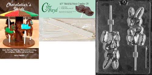 Cybrtrayd 'Grabby Bunny Lolly' Adult Chocolate Candy Mold with 25 4.5-Inch Lollipop Sticks and Chocolatier's Guide