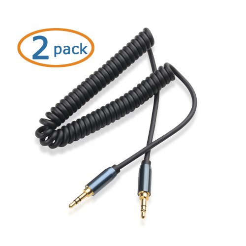 2-pack coiled stereo cables connect MP3 players, smartphones, tablets, computers or other audio devices with a 3.5mm auxiliary port (AUX) to your headphone, portable speaker, amplifier, AV receiver, or car stereo