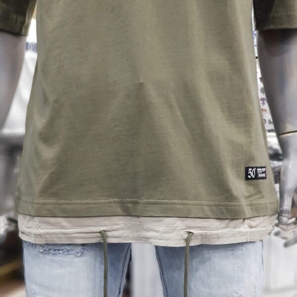 버커루 남성 레이어드 스트링 반팔티셔츠입니다. 기본 레터링 로고가 박혀있고 스트링 디테일로 심플하지만 지루하지 않는 디자인입니다.