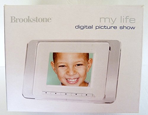 -. Binding : Electronics -. Brand : Brookstone -. EAN : 0883594010460 -. Feature : High-resolution 3" screen delivers lifelike colors, details and brilliance / Simple to use -- just insert your SD/MMC memory card or Memory Stick to display photos / Automatically reformats your photos to the correct size / Slide show mode may be changed from five seconds per picture to one picture per day -. Label : Brookstone -. Manufacturer : Brookstone -. MPN : 579300 -. PackageQuantity : 1 -. PartNumber : 579300 -. ProductGroup : Photography -. ProductTypeName : CAMERA_OTHER_ACCESSORIES -. Publisher : Brookstone -. Studio : Brookstone -. Title : Brookstone My life Digital Picture Show 3 inch Frame -. UPC : 883594010460