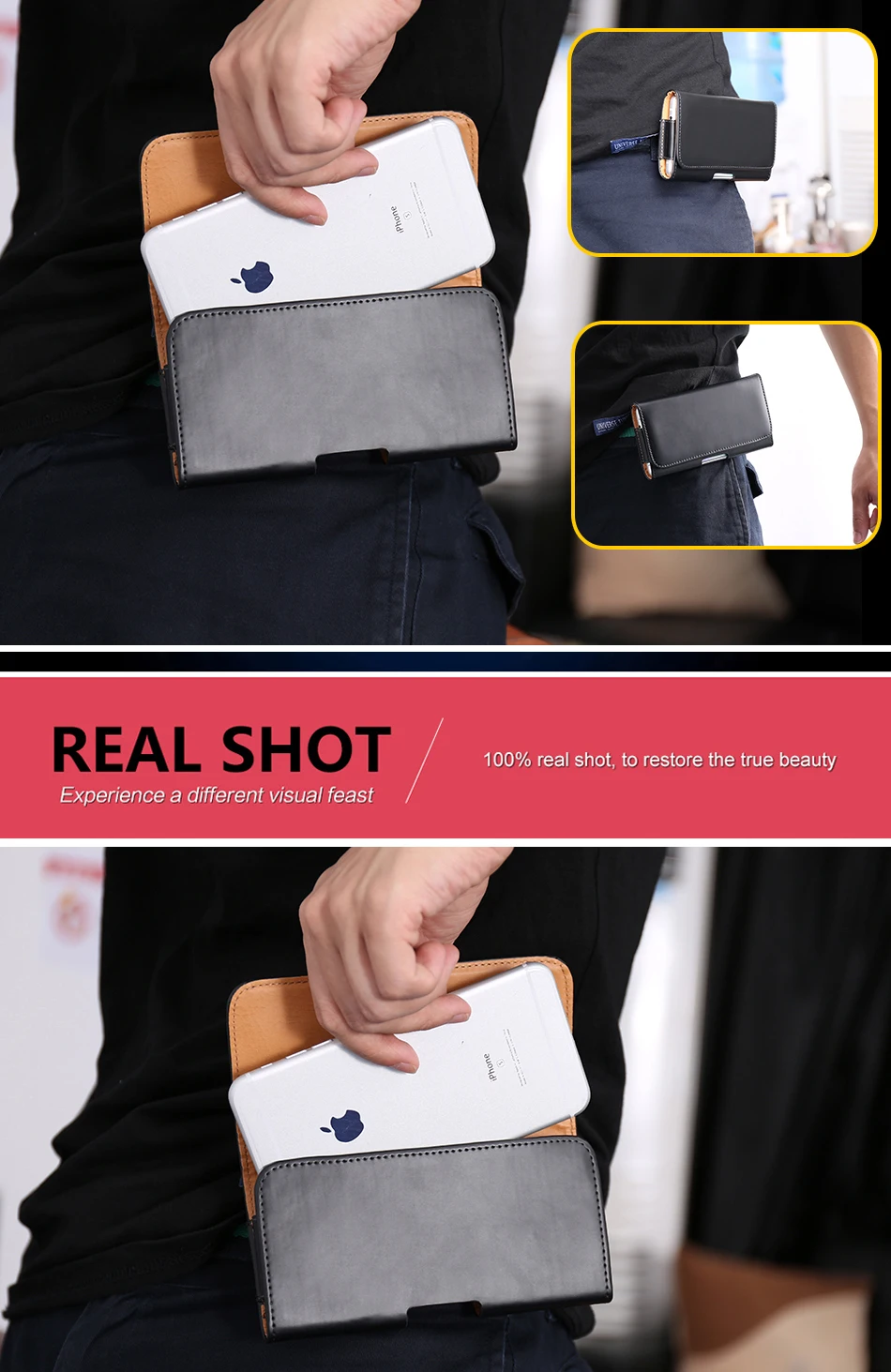 高級ユニバーサルホルスター電話ケース用サムスンs6 s7エッジケース用iphone 6 6 sプラスcapaベルトクリップウエスト男革カバーバッグ