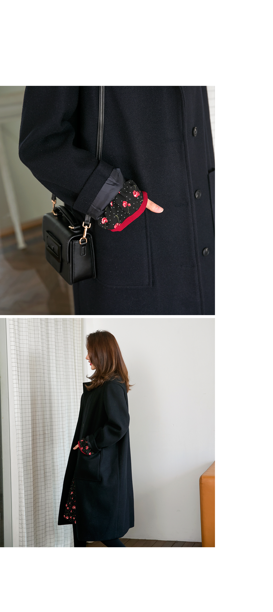 울이 60퍼센트 이상 들어간 고퀄리티의 카라 코트로