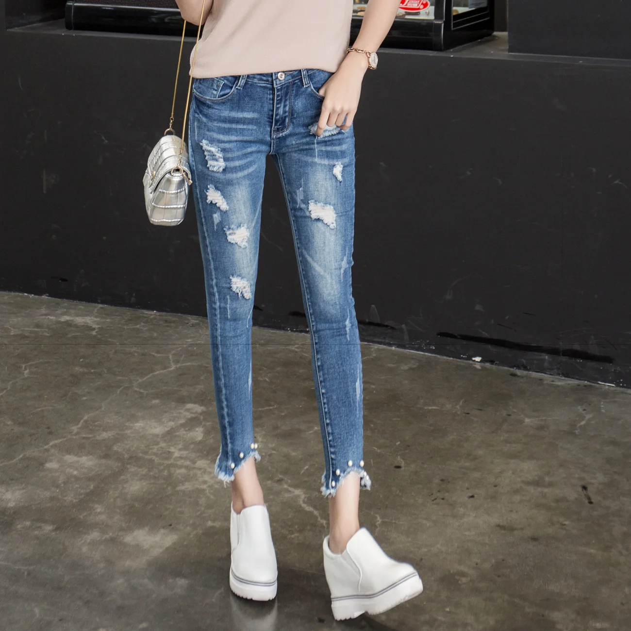 Decoration:Button,Embroidered Flares,Cuffs,Fake Zippers,Bleached,Ripped,Washed,Patchwork,Scratched