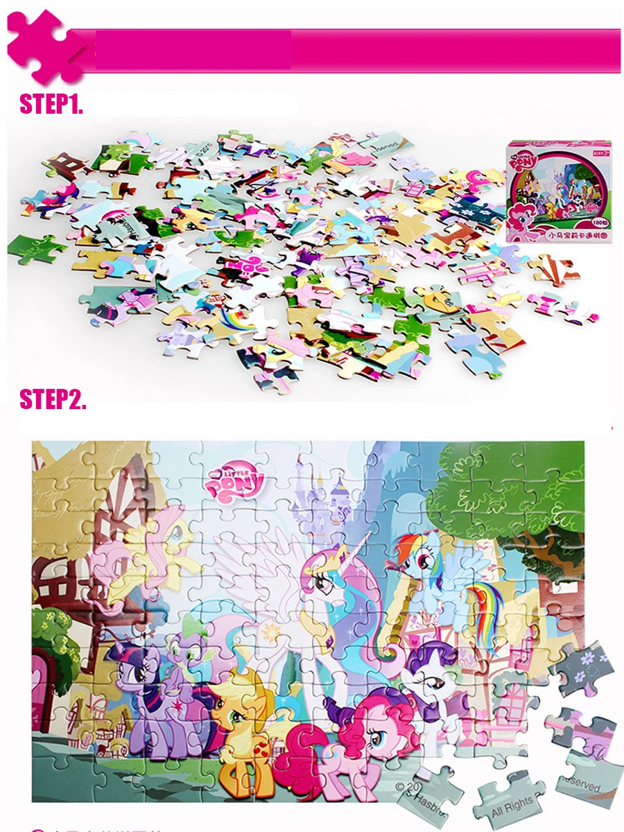 Product name:New 100 Pieces Kids Animal Pony Cartoon Jigsaw Puzzles Creativity Educ