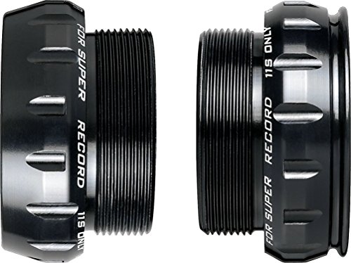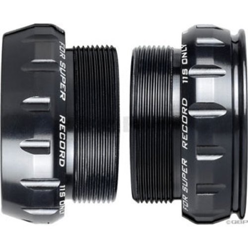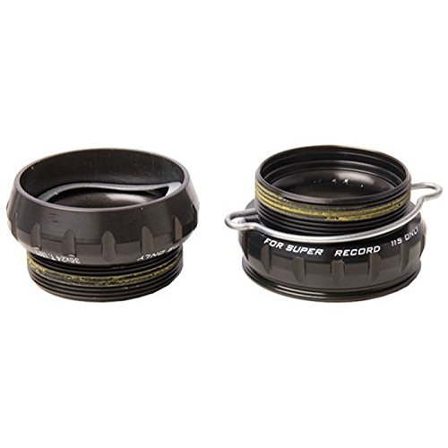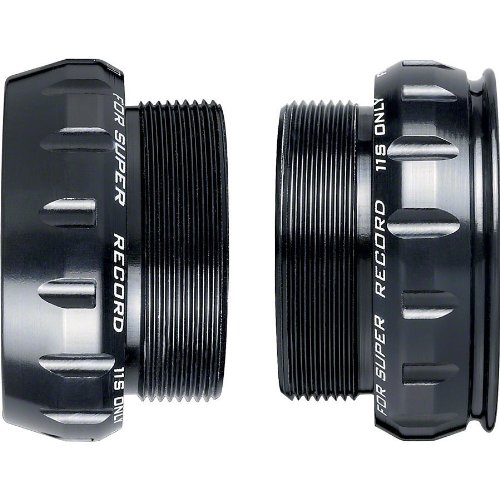 Studio : Campagnolo Publisher : Campagnolo Product Description The Campagnolo Super Record 11 speed Ultra Torque bottom bracket is hardly a component. The CULT ceramic bottom bracket bearings themselves are actually pre-pressed onto the Super Record 11 crankset semi-axles. When you buy a Super Record 11 Ultra Torque BB all you get is two empty bottom bracket cups (read: no bearings), plus one safety spring to hold your driveside crankarm in place while you install the non-driveside arm. You can install the Ultra Torque Super Record bottom bracket cups with Campagnolo's UT-BB120 bottom bracket installation tool, or with the same Park BBT-9 tool you use to install Shimano Dura Ace BB cups. Campy specifies a 35Nm torque for installation. One other detail of note: The Super Record bottom bracket cups are hard anodized for corrosion-resistance. Unlike the silver color of the Record 11 bottom bracket cups, the Super Record cups have more of a pewter finish. Available in English (68mm) or Italian (70mm) threads.While these BB's are stamped with "11 Speed Only" on the cups, please rest assured that Campy 10 speed and 11 speed bottom bracket cups ARE 100% interchangeable.The actual weights of the Campagnolo Super Record 11 Ultra Torque Bottom Bracket: English is 52g. Italian is 48g. 11% lighter than the 2010 model while still obtaining the same stiffness Laser-etched graphics add sex appeal Compatible with Campagnolo 10 or 11-Speed Ultra-Torque Cranksets Note: BB cups and mounting bracket only