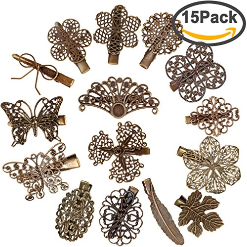 Jaciya 15 Pack Vintage Hair Clip Hairpins Hair Barrettes Butterfly Leaf Flower Feather Shape Hair Clips