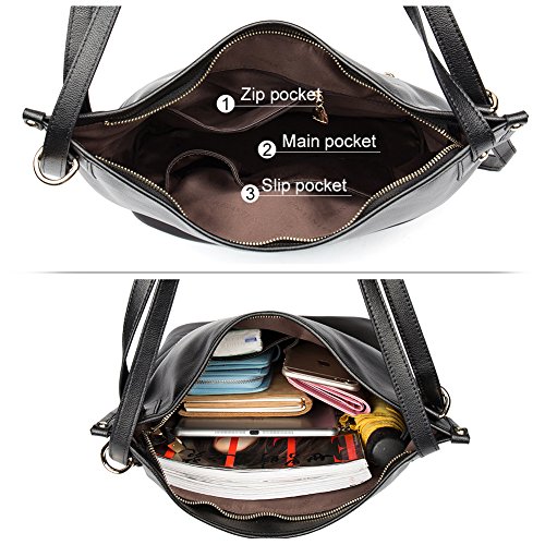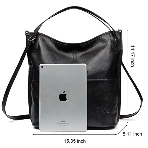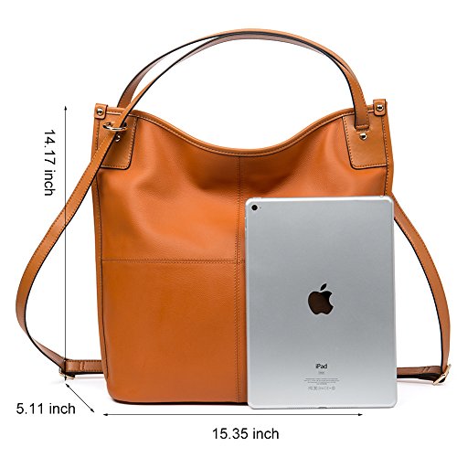-. Feature : [Warm Prompt]: Dear customers, if you have need to purchase our products as gifts to your family members or friends, you'd better to advance your purchase for some days comparing with delivery time previewed, in order to avoid late delivery caused by problems of fulfillment by Amazon in the holiday. / [High Quality Material]: Top grain soft leather, durable fabric lining. High quality gold hardware. Zipper closure for your security. / [Dimensions]: (L)15.35" x (W)5.11" x (H)14.17" inch, with adjustable approximately 14.17 inch handle. Net weight is about 1.58 lb/0.72 kg. / [Structure]: Interior Pocket contains 1 big compartments + 1 inside zipper pockets + 2 sandwich pockets. Exterior pockets is a rear zippered pocket,easy taking things with or out. Large capacity designed, this leather hobo handbags comfortably holds 10 inch laptop iPad, iPhone6s Plus, wallet, cosmetic, and other daily things, perfect to use as daily hobo handbags for working, shopping or dating. / [Delicate and Practical Design]: This hobo handbag is Multifunctional handbag, and hand made by professional artisans. Zippered top closure with long shoulder handle. Shoulder bag with buckle fastening adjustable shoulder strap and can be changed to be used as: Hobo handbag, Shoulder Bag or Backpack.