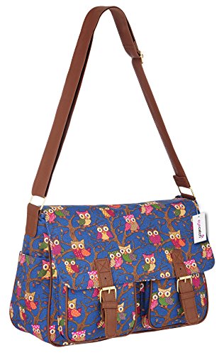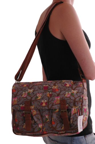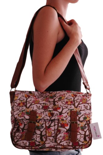 -. Title : Womens Canvas Satchel Owl Messenger Shoulder Bag
