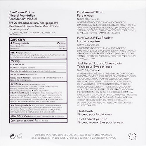 Our Pure & Simple Kit is the easiest way to try our Mineral Makeup! Create a beautiful look with just the right shades for your skin depth and tone. Anti-oxidant rich PurePressed Base Mineral Foundation is sheer, matte, oil free and weightless. A little swirl of PurePressed Blush across cheeks will highlight with a soft wash of natural looking color. Enhance the color and shape of eyes with long-lasting, crease-resistant PurePressed Eye Shadow. Used wet or dry, it’s totally gentle and safe for sensitive eyes. Go rosy with Just Kissed Lip and Cheek Stain. Rich in natural botanicals, the formula is loaded with Olive and Avocado oils plus Rose Flower Wax & Beeswax so you can kiss dull, dry lips goodbye.Feature