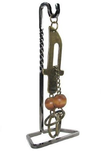 Studio : Winshare Puzzles and Games Publisher : Winshare Puzzles and Games Binding : Toy Product Description Beautiful and colorful disentanglement metal puzzle, Assembled from metal, chain and wooden beads. Can you separate the metal ring around the sword from the rest of the frame? It is very difficult and challenging puzzle. A nice stand to hang the puzzle is included. 0