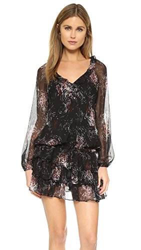 A painterly swirl pattern complements the playful feel of this airy Elizabeth and James dress. The full skirt is composed of layered ruffles, and flounced trim accents the scoop neckline. Drawstring at the elastic waist. Long sleeves and gathered elastic cuffs. Optional slip-dress lining.Feature