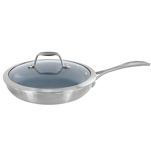 ZWILLING Spirit 3-Ply gets you in the mood to cook. Thanks to a thick, aluminum core, these versatile pans are fast-heating and boast an even cooking surface. The exclusive, stay cool handles are designed for easy maneuvering with oven mitts and the dripless pouring rims help prevent kitchen spills. The tight-fitting tempered glass lids allow you to effortlessly monitor your cooking. The ZWILLING Spirit ceramic nonstick coating is a healthy alternative to traditional PTFE coatings. Less oil is required and no toxic fumes are released into the air when the pan is heated at high temperatures.Feature