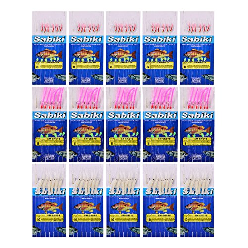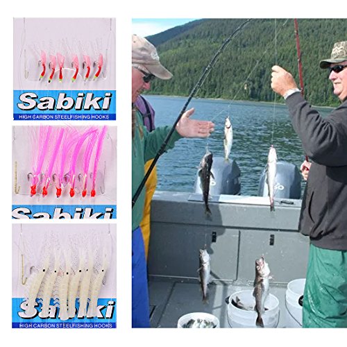 -. Title : FishingSir Sabiki Tackle Rigs Saltwater Sea Fishing Lures Trolling Hook Bait Freshwater & Saltwater Fishing Accessories with Fluorocarbon Leader #8 10 12 14 16 - 8 Packs