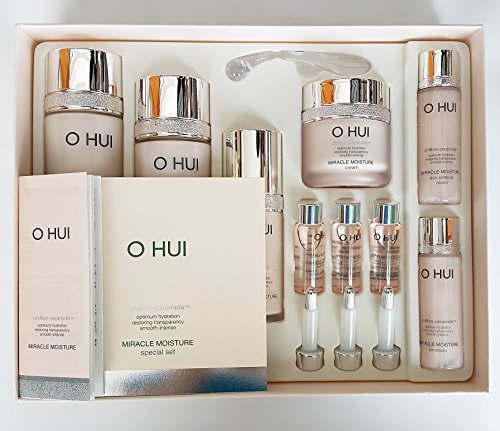 -. Feature : Ohui Miracle Moisture Skin Softener(moist) 150ml / 20ml / Ohui Miracle Moisture lsion 130ml / 20ml / Ampoule 777 7ml x 3ea, Essence 20ml, Moisture Cream 20ml / Containing the Chiffon Ceramide ingredient, which helps enhance the natural moisturizing barrier of the skin, this moisturizing line keeps the skin firm and healthy, without allowing even a slightest dryness.