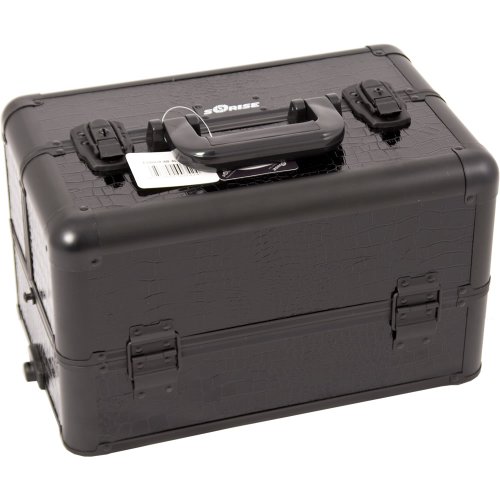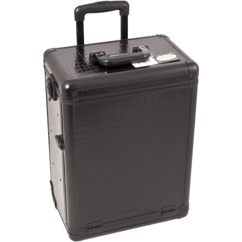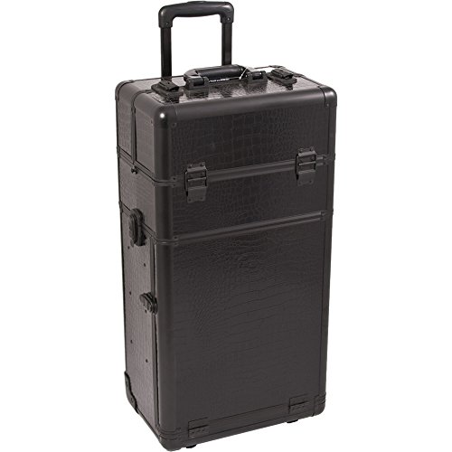 SUNRISE Rolling Makeup Case 2 in 1 I3563 Professional Artist, 3 Trays and 3 Drawers, Locking with 2 Mirros, Brush Holder and Shoulder Strap, Black Crocodile