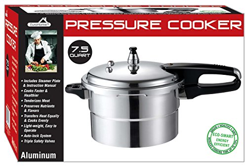 EURO-WARE 317 DELUXE ALUMINUM PRESSURE COOKER WITH STEAMER PLATE AND AUTO LOCK SYSTEM, 7.5 QUART, SILVER