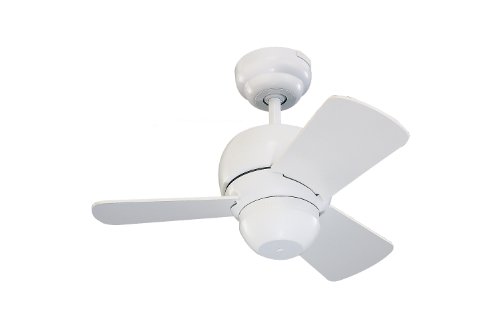 The Monte Carlo 3TF24WH Micro collection 24" outdoor ceiling fan (with pull chain control) in White brings Contemporary style. This fan includes Three White Weather-Resistant Finish Blades and the hanging height is 13.58". The voltage is 120 volts. Additional Information: Control - Three-speed pull chain with manual reversing switch on motor; Downrod - Includes 4" (1/2" Interior Diameter) PoleFeature