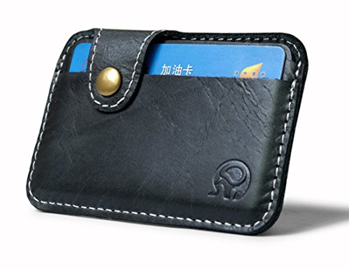 -. Feature : Made from 100% vintage genuine oil wax leather :This thin card sleeve is made from vintage premium genuine leather ,durable and stylish .Comfortable to use. Great slim card sleeve wallet for carrying your most frequently used cards and some bills / Ultra slim front pocket wallet: The leather card holder is designed to be slim and feels amazingly soft. Sturdy enough to last a long time, its super slim figure makes it easy to slide into your front pocket. It is thin, fits perfect in your pocket and can hold 1-5 cards and some folded cash comfortably / Special minimalist wallet designed - srrap with snap button: The slim front pocket wallet is very simple and personality, it is not only lightweight, it sewing a strap with snap button to prevent cards and cash drop . / Slim wallet card holder case measures: 3.94L x 0.3D x 2.64W inches . 1 card slot and 1 cash holder where you can put some folded cash, giving you a bulk free pocket while feeling thin and light / Daily use and dress collocation: It is perfect for a night out tucked away almost invisibly in your pocket and it won't look like that you are bring a brick when you are bringing all the necessary. Professional for business cards or a small wallet which carry the cards you often use .Whether you wear jeans, shorts, or slacks, it fits perfectly in front or back pocket without being noticed. Ideal gift for your family members and friends
