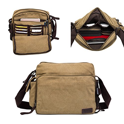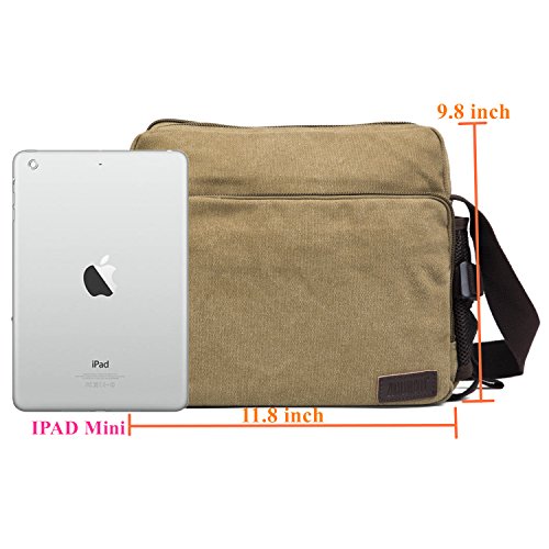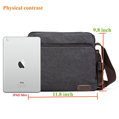 -. Feature : Dimensions: (LxWxH): approx 9.8*4.3*11.4"(Fit for ipad ); Weight: 1.65pounds;Note:manual measurement with 1-2 cm error. / Material:High density washed cotton canvas fabric with solid color.The length of the shoulder strap is adjustable.Additional water bottle holder can be easily removed from the bag for single use. / Structure: Inside multi-layer and multi-function pocket make you gather your kits such as Ipad,phone,card,note books,pens etc freely;And attached small drawstring pocket specially designed for drinking bottle containing. / Soft material and interior compartment make you put away your kits separately,no need to worry scratching because of collision. / The bag is designed mainly for men and boys.It's an ideal choice for traveling,walking,going street,and daily life use (schooling,shopping etc) as well.Fashionable,practical and multi-function design and comfortable to wear.