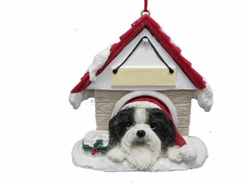 Shih Tzu Black and White Ornament A Great Gift For Shih Tzu Owners Hand Painted and Easily Personalized "Doghouse Ornament" With Magnetic Back