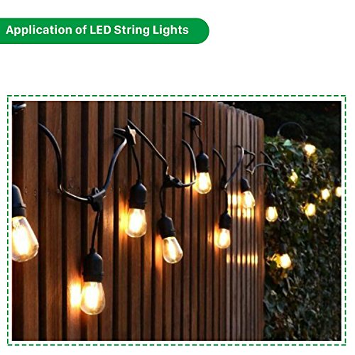 Hykolity 24ft LED String Lights - Outdoor Commercial Grade Weatherproof with 7 Hanging Sockets Dimmable Edison Style 2 Watt Bulbs for Porch Patio Garden UL Listed