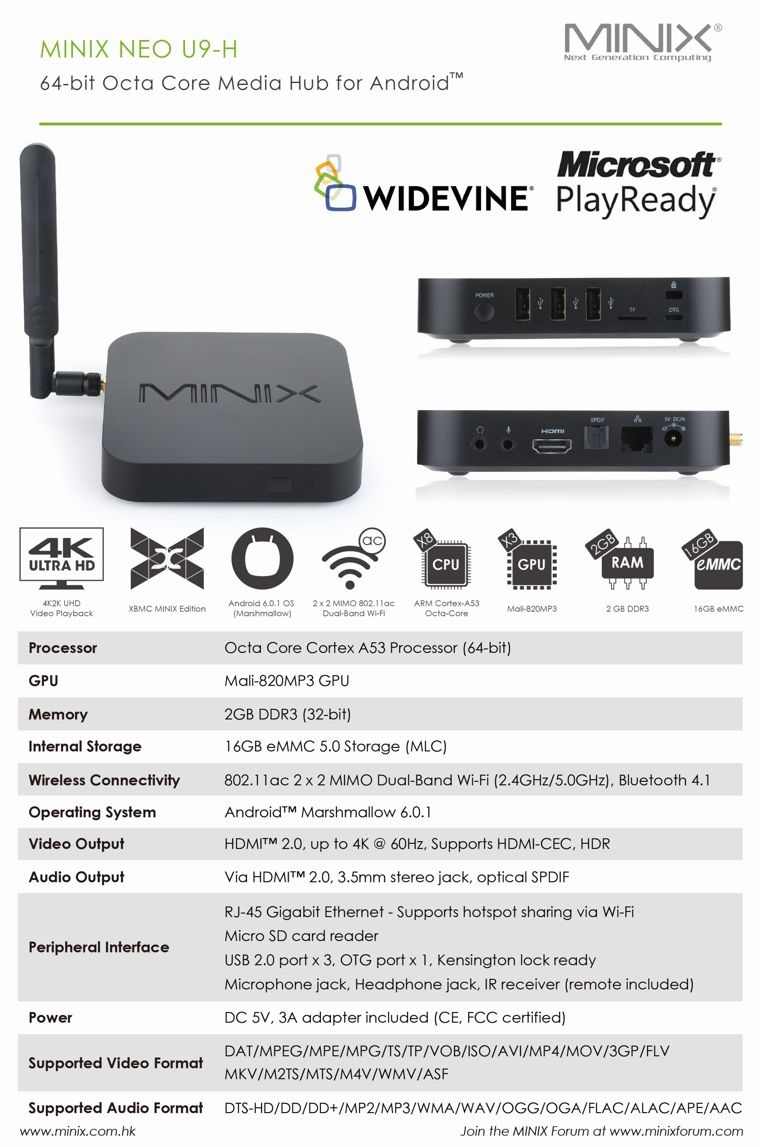 Licensed support for both Microsoft Play Ready 3.0 and Google Widevine Level 1. NEO U9-H’s implementation of these two Digital Rights Management schemes offers enhanced content protection essential for certain streaming services.