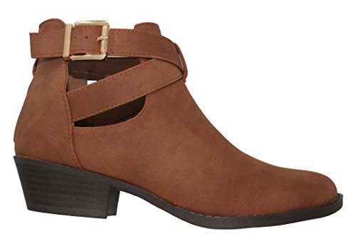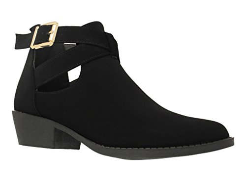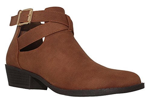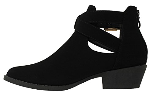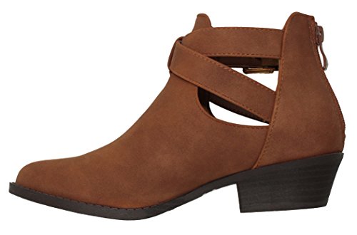 (MVE Shoes)/Women's/Boots/DIRECT FROM USA/MVE Shoes Women's Booties Strappy Back Zipper Almond Toe