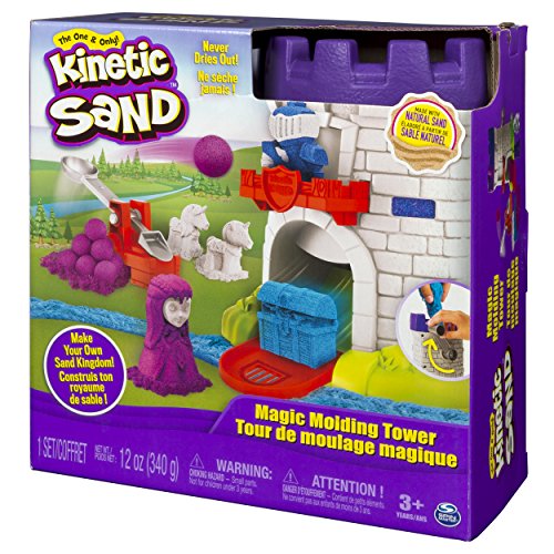 Create, build and defend your sand kingdom with the Kinetic Sand magic molding tower! Kinetic Sand is the squeezable sand you can’t put down! It’s the magical, moldable sand that flows through your fingers, leaving them completely dry. With the magic molding tower you can create your own characters out of Kinetic Sand. Place Kinetic Sand into the top of the tower, then crank the handle three times and watch as a unicorn, Dragon or treasure are magically created! Mould a warrior princess and a brave Knight, and protect your sand kingdom with a real working catapult! Create your own adventures with the Kinetic Sand magic molding tower! For ages 3 and up. No batteries required.Feature