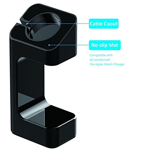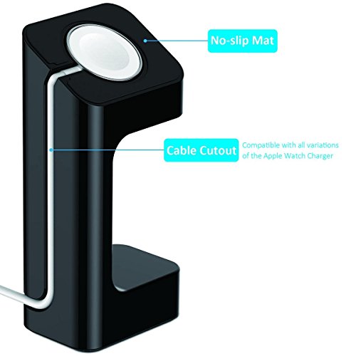 iClever 4 Inch Perfect Cable Cutout Design Apple Watch Stand Charger, Desktop Charging Dock Holder for 38mm/ 42mm Apple Watches (Black)