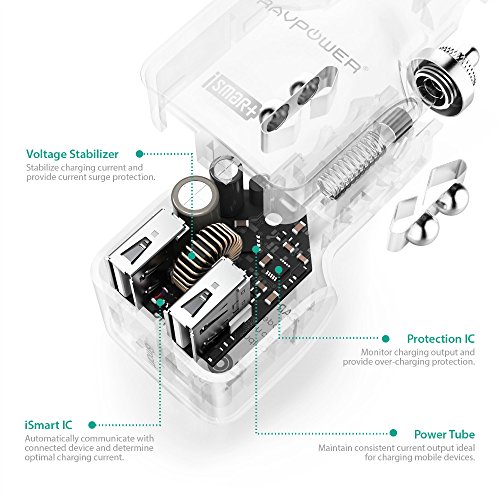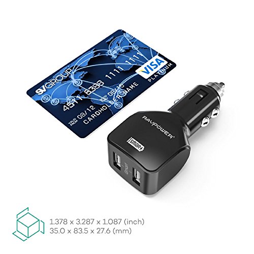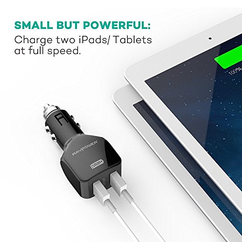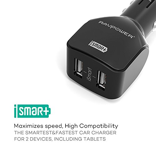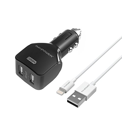 Car Charger Cable,RAVPower 24W 4.8A Dual USB Car Charger with 3ft Lightning-to-USB Cable for iPhone SE/ 6/ 6S/ 6 Plus, iPad Air 2/ Pro/ mini 3 and More