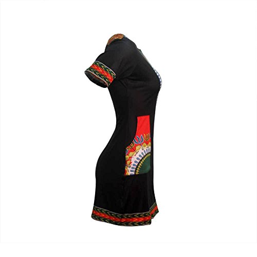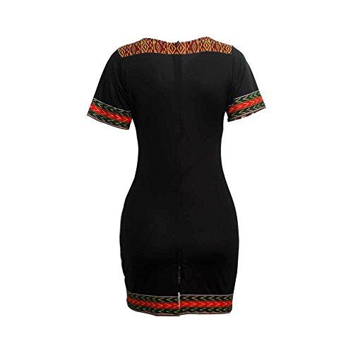 Women Traditional African Print Dashiki Bodycon Short Sleeve Dress