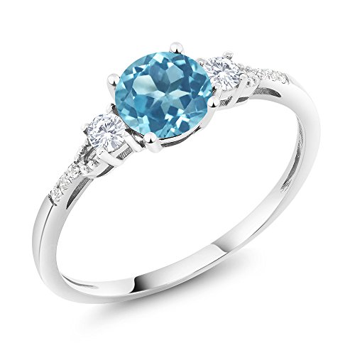 -. Title : 10K White Gold Diamond Accent Three-stone Engagement Ring set with Swiss Blue Topaz White Created Sapphire (1.05 cttw, Available in size 5, 6, 7, 8, 9)