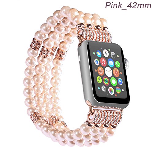 -. Title : Mington Apple Watch Band Replacement, Decorated Handmade Luxury Jewelry Faux Pearl Bracelet Elastic Stretch iWatch Strap with Girls Women Wristband for Apple Watch Series 38mm/42mm