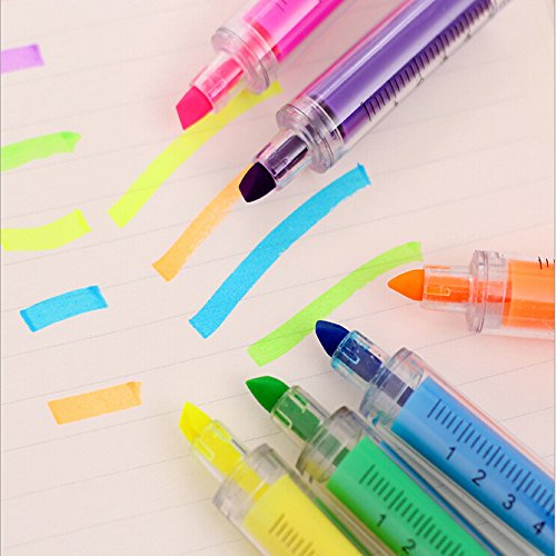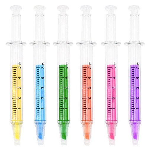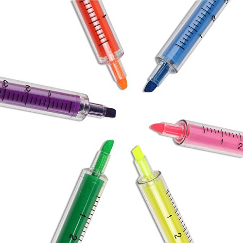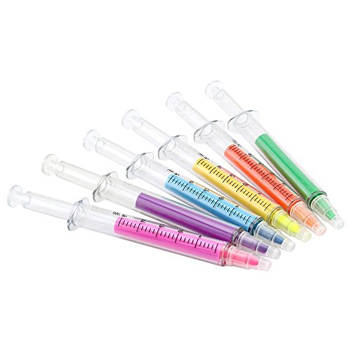 Pshine Creative Novelty Syringe Colorful fluorescent pen/Color Highlighter marker nite writer For Nurse Doctor Stationery ,Crazy Student Gift with 6 Colors,pack of 30