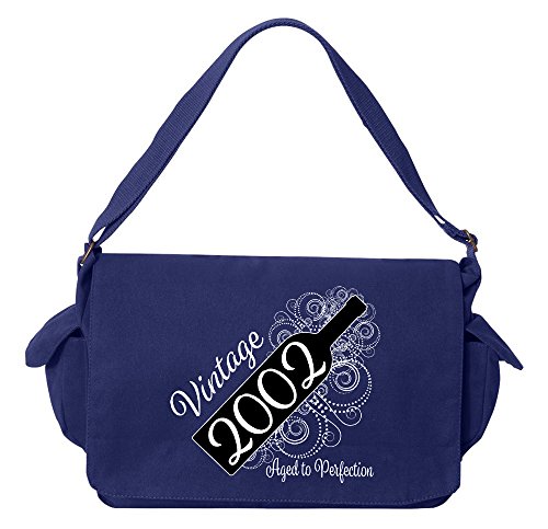 Studio : Tenacitee Publisher : Tenacitee Binding : Personal Computers Product Description Born in 2002 - Aged Like a Fine Wine Brushed Canvas Messenger Bag by Tenacitee. Express yourself! No boring bags here, this messenger bag is custom printed in our Oklahoma shop just for you. Made of 12oz 100% soft brushed cotton canvas this bag is perfect for telling the world what you think while you're out and about town. We use the latest Direct to Garment printing technology for a vibrant and soft print with less wasted ink. The bag is machine washable, has several inside zippered pockets, an interior key leash hook, and a 2" wide adjustable shoulder strap. The bag measures approximately 16"x11.5"x4.75". 0