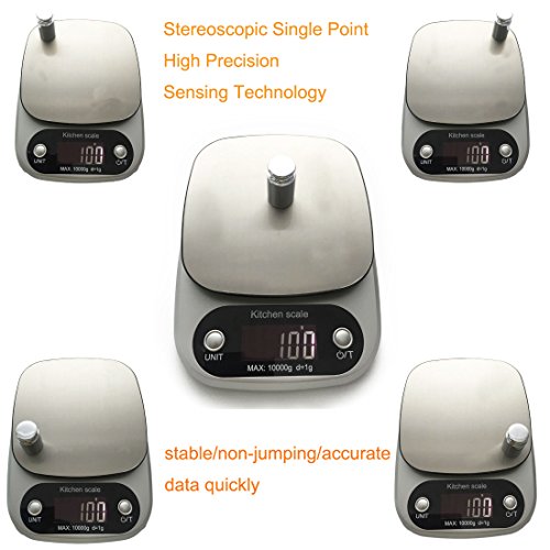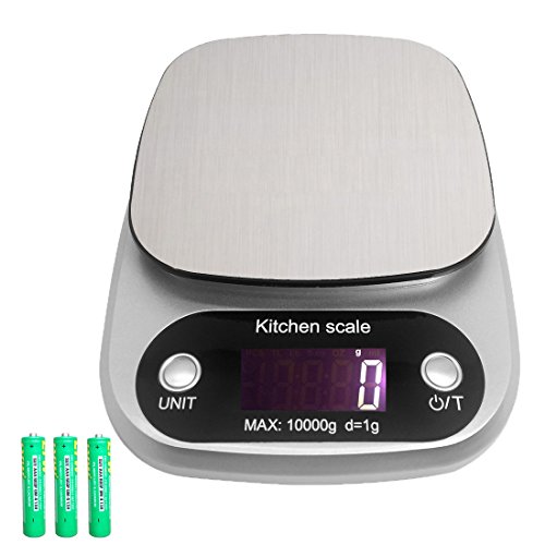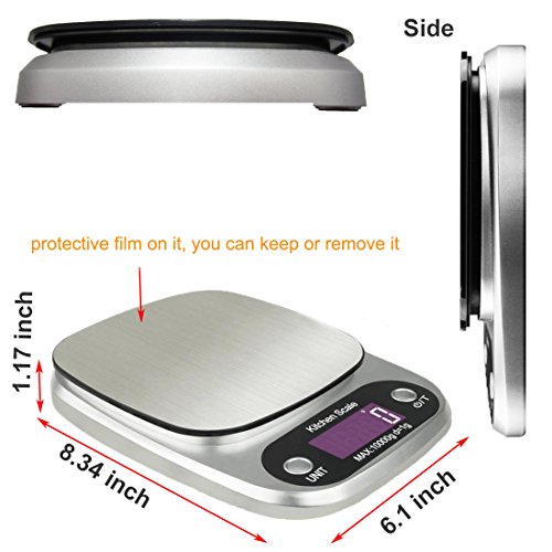 Digital Kitchen Food Scale 22lb 10kgs for Volume and Weight LCD Display Tare Stainless Steel G OZ LB ML FL.OZ Silver Batteries Included