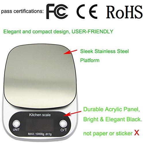 - Tare Function: you can zero out the container weight on the scale, add ingredients until reached the desired weight, so easy to solve the different ingredients weighing problems