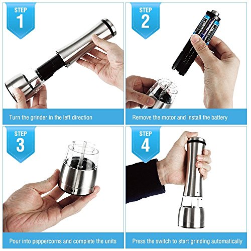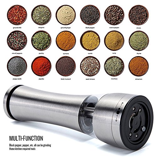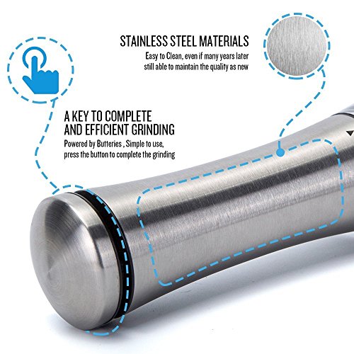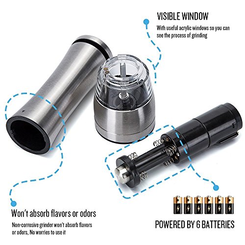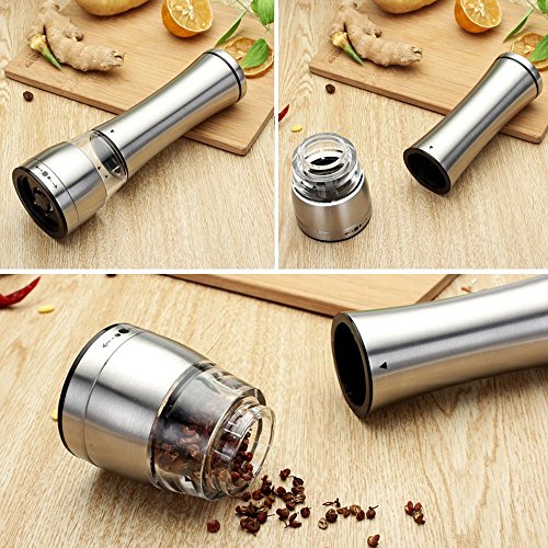 Electric Salt and Pepper Grinder Shakers, CANPER Battery Operated Stainless Steel Pepper Mills (1 Pack)
